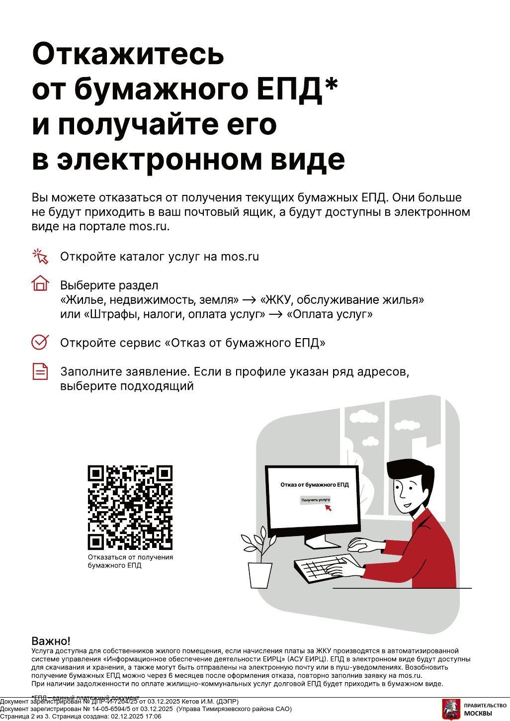 Откажитесь от бумажного ЕПД* и получайте его в электронном виде