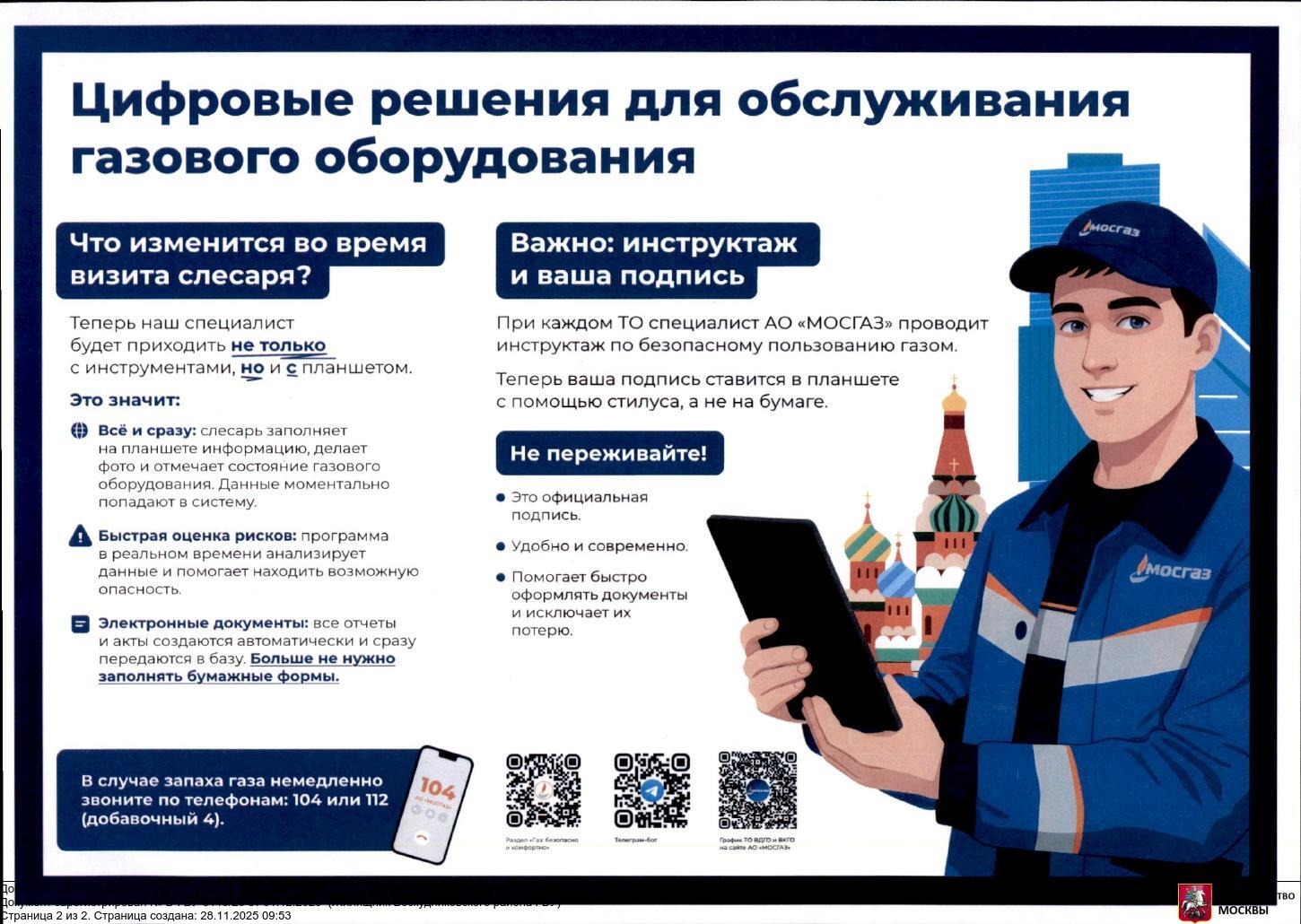 АО «МОСГАЗ» проводит плановое техническое обслуживание внутридомового и внутриквартирного газового оборудования в многоквартирном доме